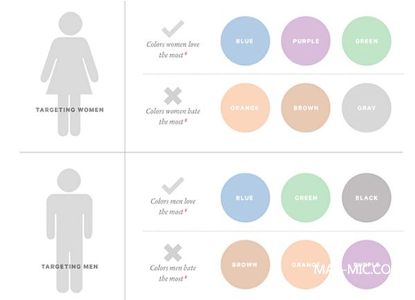 在女性用戶這邊,橙色也是相對不那么受歡迎的色彩,所以,如果你的客戶是女性的話,盡量避免這一點。