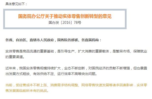 國(guó)務(wù)院辦公廳關(guān)于推動(dòng)實(shí)體零售創(chuàng)新轉(zhuǎn)型的意見(jiàn)